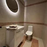 Goditi dei comfort del bagno del Notodden Sentrum Apartment No 13, che è dotato di essiccatori e teli da bagno.
